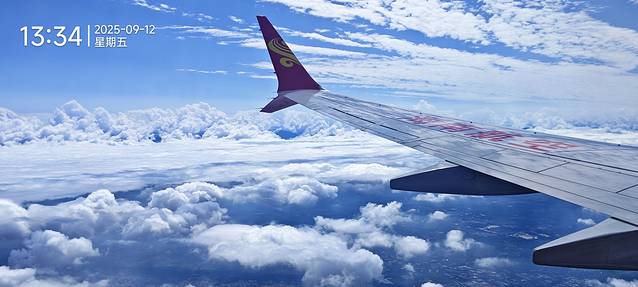 我们出发当天天气不错,飞机上的蓝天白云非常的悦目