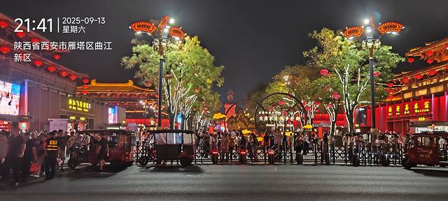 大唐芙蓉园离大唐不夜城非常近,从大唐不夜城往前走个几百米就到了,如果像我们一样住在绽白艺术酒店方向,那么晚上的交通方式最好坐三轮车或者步行,因为大唐不夜城的人太多了,坐网约车或者的士都会容易堵车