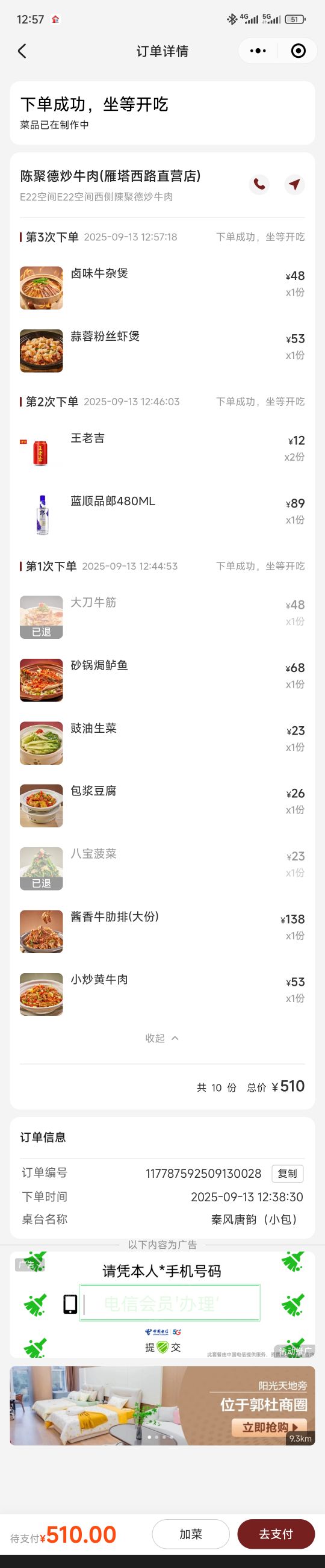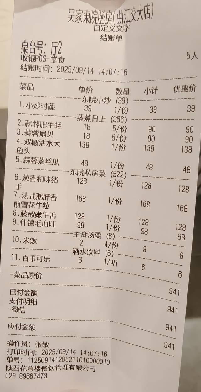 这里没有预制菜,每一道菜都是现炒现做,关键是还能把每一种菜系做的相当的地道,味道也很好,虽然价格相对于西安的其他的饭馆来说偏贵,但跟长沙,广东这些城市的消费水平来讲,这还算正常