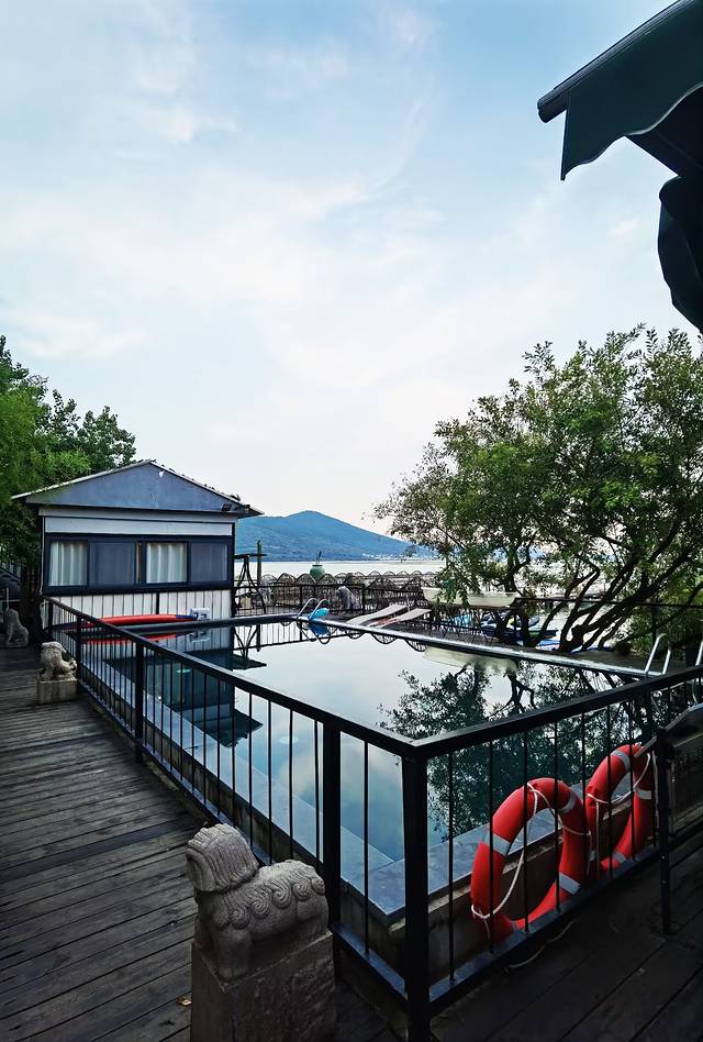 2、环境方面。这家民宿是观赏太阳落山的好地方,无论在房间的大露台,还是在蜿蜒的湖岸线,都能看到天际的瑰丽晚霞,尤其是伸向太湖的一条栈道,站在这个位置,视线毫无遮挡;据介绍,民宿前面的这片太湖水域,风向、风速、气象、水文非常适合帆船训练,现在成了多支水上运动队的业余训练基地,如果来的巧,可以瞅到帆船点点与蓝天白云相辉映的景象;有兴趣的话,还可以坐上快艇或摩托艇环岛兜上一圈或在湖面上尽情冲浪。民宿的每一间客房都是景观房,面向太湖、景致旖旎,可以枕着潮声轻松入眠,听着蛙鸣悄然入梦。