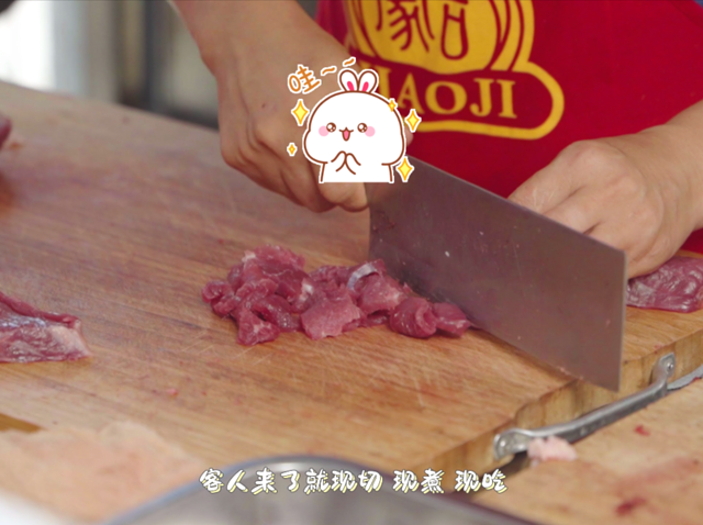 跟老板唠嗑才知道,他家牛肉都是收的本地农户自养牛,每天凌晨 4 点就屠宰运到店里,客人来了现切现煮现吃,主打的就是一个新鲜!牛肉在锅里烫几秒就捞出来,咬一口,劲道又鲜香,没有一丝柴感,满满的都是肉香,这口感,谁吃谁迷糊!🥩