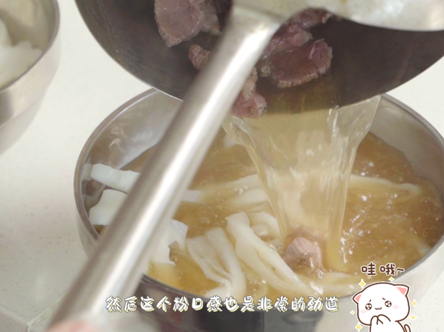 汤底更是绝绝子,用纯牛骨从头天晚上熬到第二天早上,整整 10 个小时,熬得那叫一个浓郁。喝上一口,鲜得我眉毛都要飞起来了,每一滴都是牛骨精华,我差点端起碗把汤底都喝光!🥣 粉的口感也超赞,吸溜一口,裹满汤汁和牛肉香,幸福感瞬间拉满,感觉人生都圆满了~