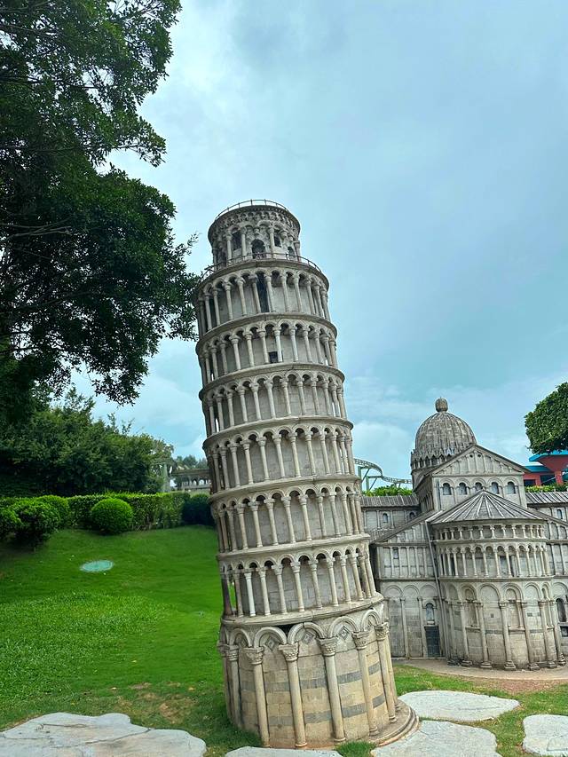 园区内遍布世界名胜的微缩景观,最出片的是金字塔、埃菲尔铁塔和比萨斜塔区域。建议上午先冲这些地方,光线柔和、人还不多,随便摆个姿势都是大片!