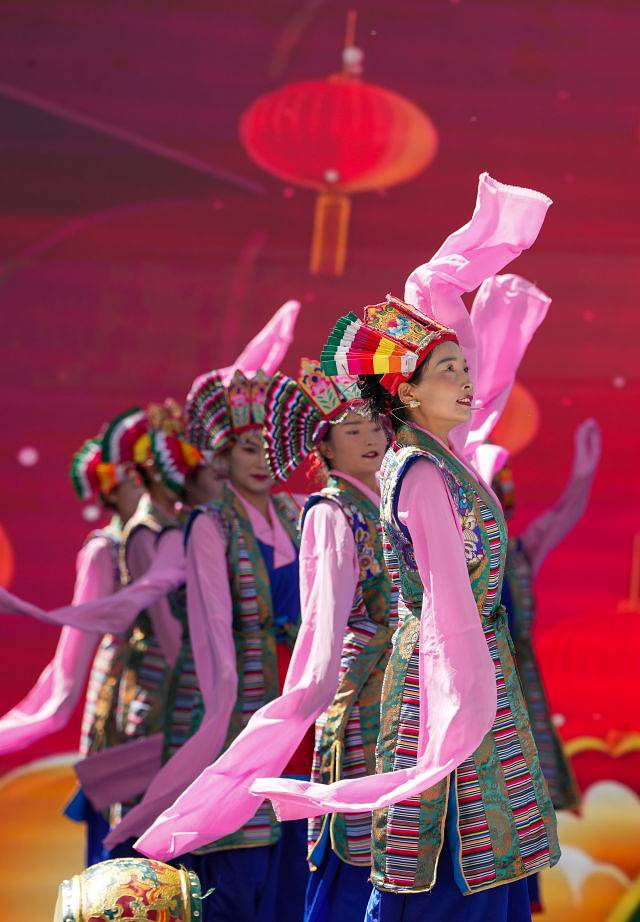 9月12日,在第四届藏香文化旅游节开幕式现场,演员进行歌舞表演。