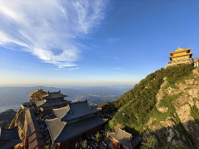 第三天(周一):老君山:因为明天一早去开封,换了洛阳龙门高铁站附近的民宿,有大件行李,就报了本地的老君山9:00出发的一日游,行李可以放在大巴车上,一日游有三个早中晚三个出发班次,有几处固定上车点,线上线下报团价格相差不大,有的报团点会接你去上车点,主要在沟通,贵一点的团做的车是中巴。9点出发的团到老君山就快13:00点了,老君上有两级缆车,第一级上下山缆车大家基本都会坐,因为不坐的话上下山走的就是盘上公路,也没有什么爬山的乐趣,就是锻炼身体。所以因为暑期人多,等一级上山缆车等了近两个小时,一级缆车有两个,一个靠近景区大门、一个靠近停车场,可以询问景区工作人员选择人数较少的一个乘坐,减少等待时间,如果坐了景区大门的那个缆车,离自己要去的停车场较远的情况下,在时间紧一点路都不想再走,可以在景区出口的地方,询问工作人员乘坐观光车去停车场,一个人10元好像。二级缆车可以根据自己体能选乘,坐的人明显就少多了,下了二级缆车走个1小时左右就到金顶了,看日落,看金顶亮灯,喝山顶的雪王和霸王(就是原价贵1块)。暑期人多下山也要排队,可以选择坐滑梯,这个人会少一点,也不是很刺激,可以随时用脚刹车,会给你绑一个垫子不用担心裤子滑破。报团,如果返程的时候没有按照约定时间下山,联系团所在导游,因为每个旅行社有好多辆车在等着返回,只要还有车没走有空位,就可以给你安排其他车返程。