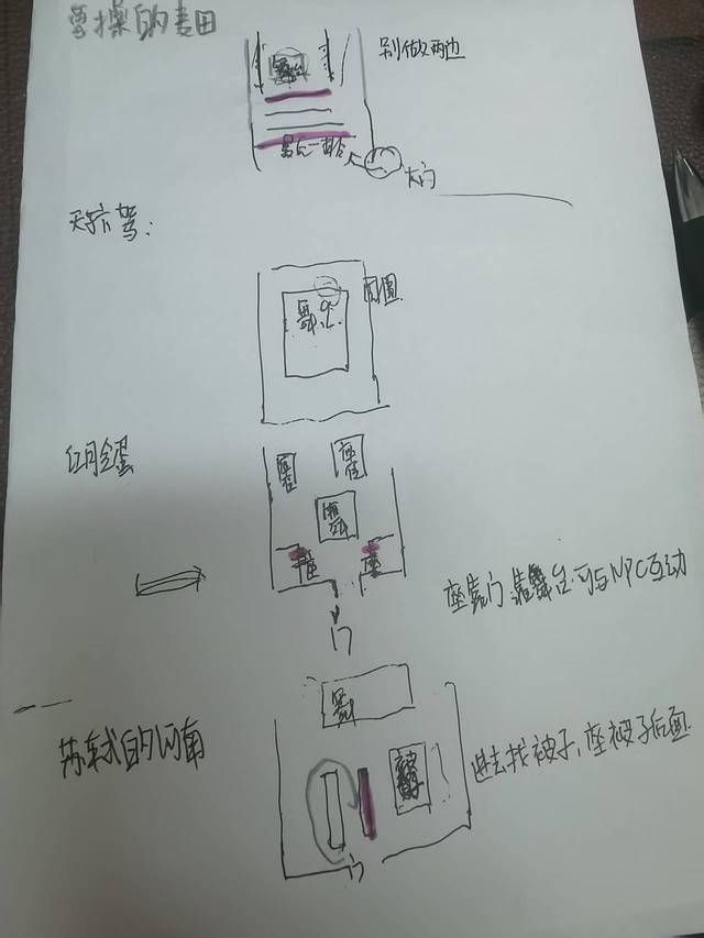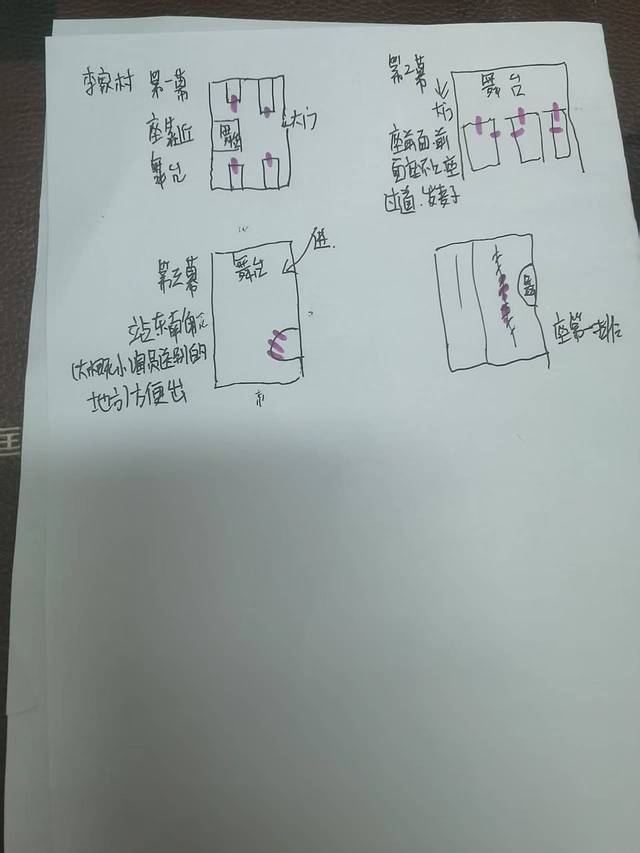李家村剧场:一共有四个转场,第一场分别几间小屋子,场景是各村民家。所以第一个场景是工作人员随机引导分配的,不用太想占位置,随缘就好,一个屋子也就十几个人,前一点后一点大差不差。第二个转场,是到布景为村民广场的剧场,在这个剧场,所有观众会从之前各个小屋子汇聚到这个剧场的坐位上,坐位都是长凳,走的快一些就可以坐的靠前,个人认为在这个剧场前后虽然有一定距离了,但是也影响不大。坐位靠前小技巧,可以放弃第一场小屋子的表演,直接到第二场的坐位等着看第二场演出,有失必有得。第三个转场,布景最为空旷,也是第四场演出的延伸舞台。在这个场景在哪看都差不多,同时也是是站着看的,演出的时候你要到这个剧场的出口处进的地方(有两个),也就是站着两三工作人员的地方,他们负责引导观众进入第四个剧场,跟着他们你就可以最早进入最后一个转场的剧场,最后一个剧场就是一个标准的影院坐位布局的剧场,这样你就能坐在至少前两排的位置。李家村剧场和火车站剧场是互为关联的两处戏。