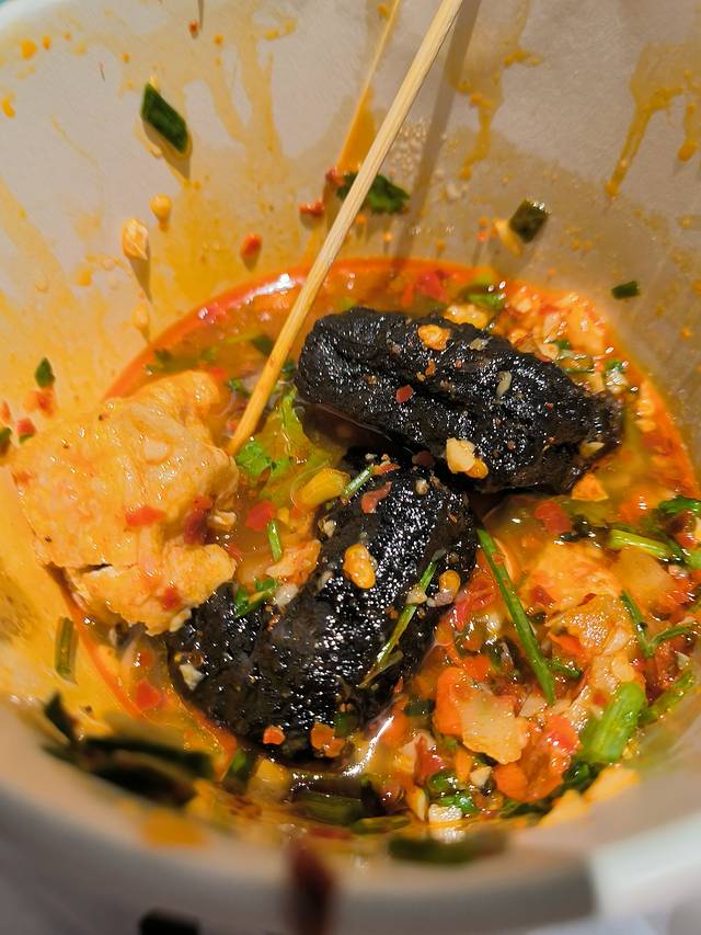 这个忘记叫什么名字了,要的不辣的,感觉就是炸过撒的椒盐,吃了几块就吃不下,太油了,可能辣的会不这么腻。