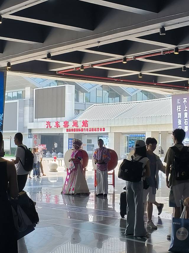 张家界高铁出站口有表演节目的,欢迎远道而来的客人,