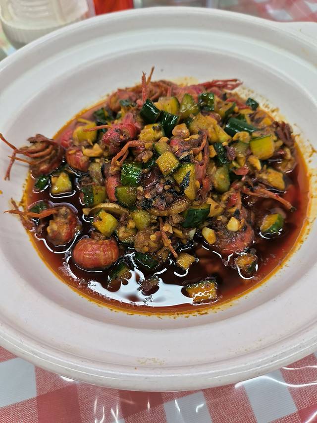 中午吃的太晚,这会一点也不饿,下船往回走到虹桥,看这家店人不少,简单点了两个菜。
