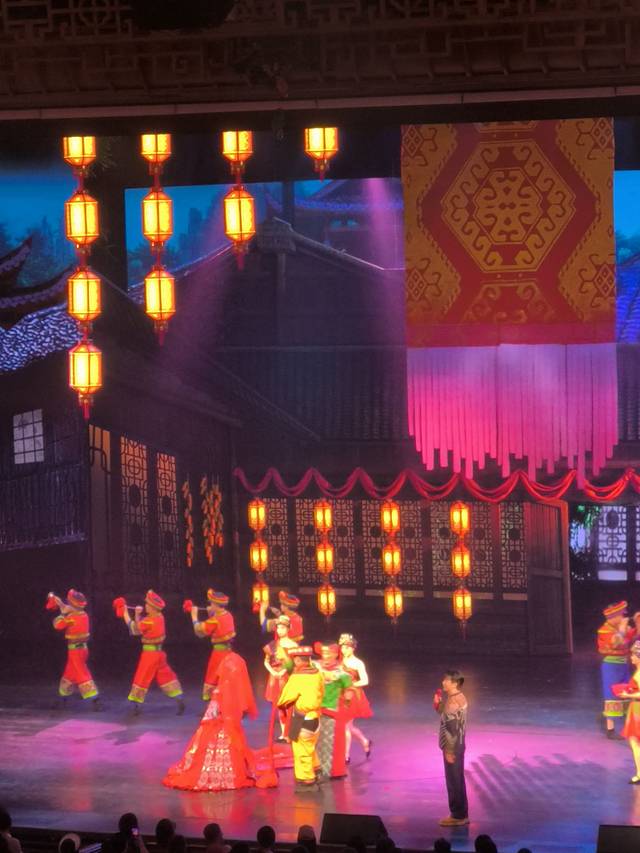 定了晚上7:20魅力湘西的演出,从武陵源出来就不早了,没吃晚饭接着赶往剧院。演出分室内室外,室内有座位号,室外随便坐。室内表演以赶尸、哭嫁等展现当地风土人情、文化习俗的节目为主,室外有飞刀、上刀山等杂技类表演,没想到娃还挺喜欢看,老人可能类似表演出去旅游看的比较多,感觉一般。