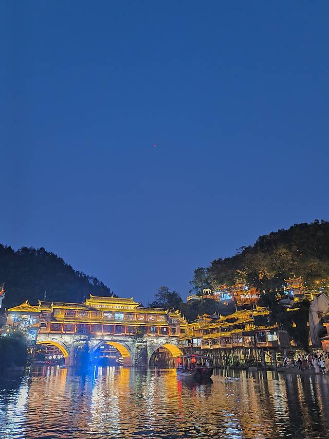 沱江游船都是单程票,夜游比日游贵,1米以上儿童就需要买半票,游览时间也就是20分钟,不过凤凰的夜景真的很美,在船上的感觉还是不一样的。