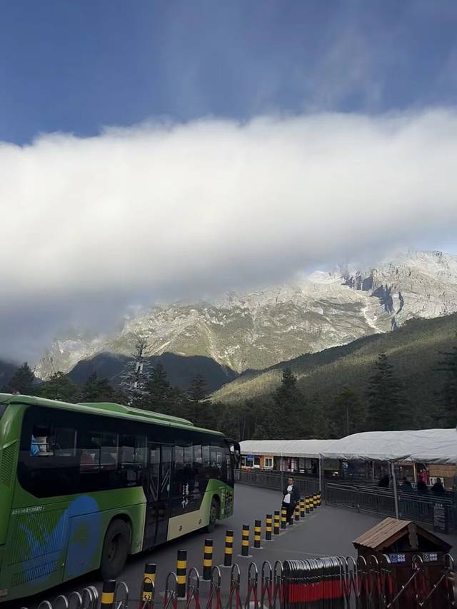 因为考虑到玉龙雪山现在没有雪用司机师傅的话说远看大石头近看石头大所以我们只买了小索道的票不过安全起见还是人手备了一瓶氧气主打一个买都买了多少吸点(不能浪费在雪山脚下云杉坪栅栏那里狠狠出片啦建议大家还是要选择早点的时间段我们选的是7.30的刚到的时候好位置还没有被占等我们拍完以后就来了一大批人啦还有需要注意的就是完全不需要坐电瓶车 去云杉坪这段路靠步行就够够的了蓝月谷的水真的很蓝 不怪她叫蓝月谷还有好多在那儿拍结婚照的新人很浪漫了玉龙雪山 等下次你有雪的时候我们再见吧