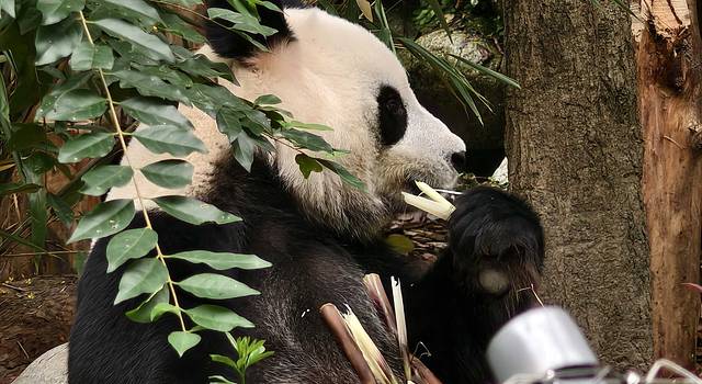 但见那花花,果然名不虚传。毛色润泽,黑白分明,坐于木架之上,不慌不忙地嚼着竹叶。它的脸盘较其他熊猫更圆润些,眼圈也格外对称,看上去总带着几分笑意。游客们低声呼唤它的名字,它偶尔抬头,仿佛与人应答,随即又低头享用它的美食,一副超然物外的神态。据说这花花极是聪慧,能听懂饲养员的呼唤,还会各种卖萌动作,无怪乎成了“顶流”,引得众人为之倾倒。