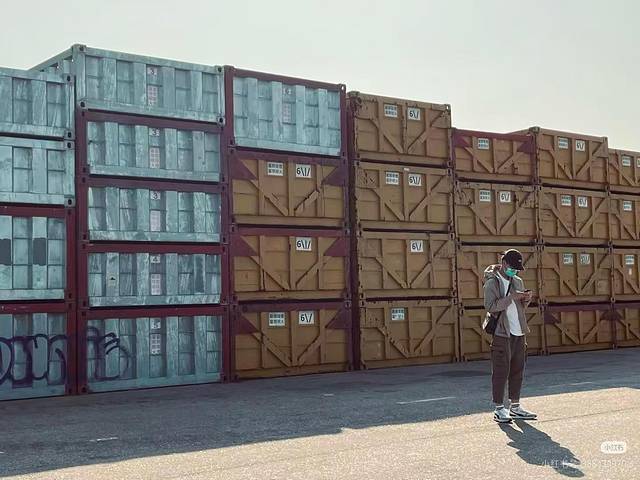简单介绍一下这个码头有什么:有码的整整齐齐的集装箱,有各样式的涂鸦,有黄黑间隔的网红码头路灯,有来钓鱼的大爷,还有来拍照的可爱小哥哥。Nice。
