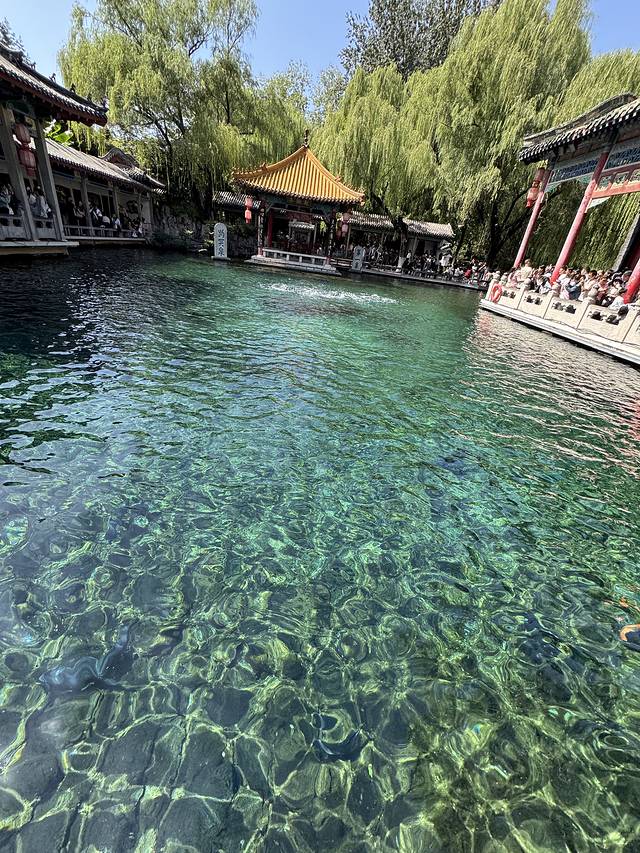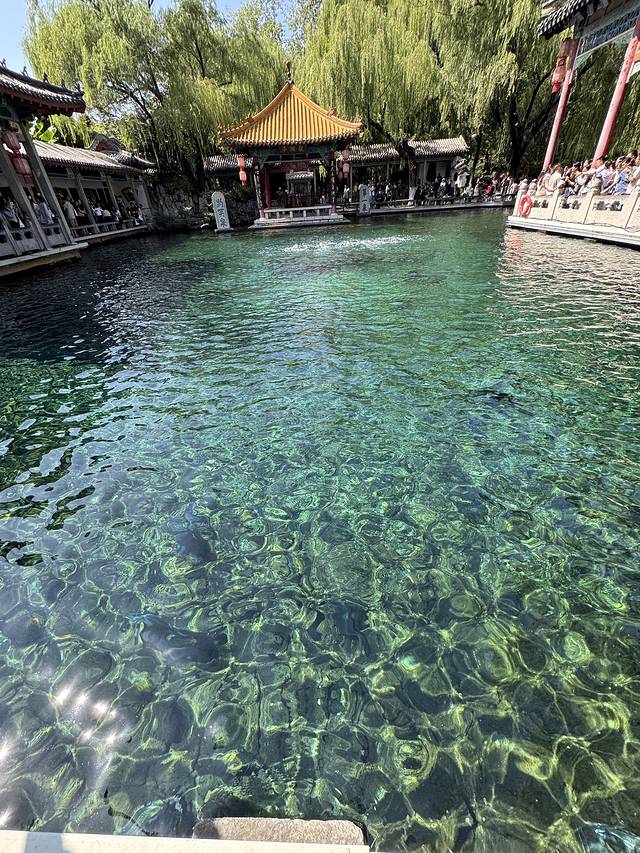 抵达济南的第一天,我就迫不及待地前往趵突泉。还未入园,便能感受到这座城市与泉水相依相融的独特氛围,街边潺潺的溪流,仿佛在轻声诉说着济南的泉城故事。踏入趵突泉公园,一幅灵动的自然画卷在眼前徐徐展开。园中树木葱茏,花草繁盛,古色古香的亭台楼阁错落其间,与澄澈的泉水相互映衬,相得益彰 。