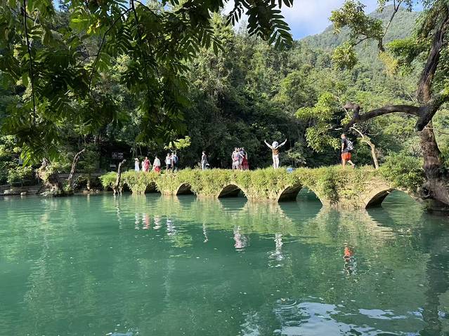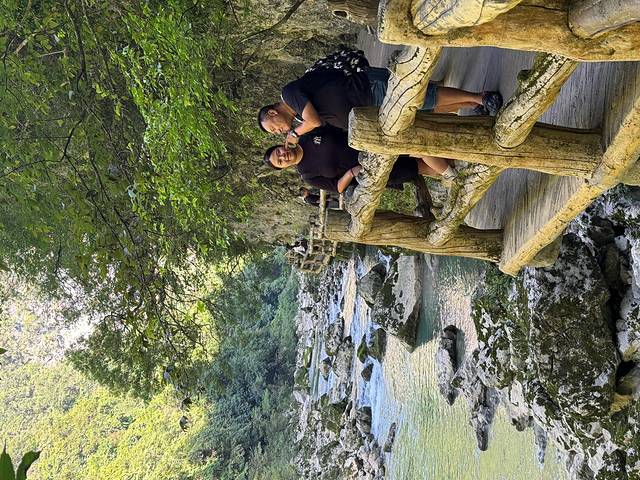 终于到了小七孔的停车场,停好车,联系好酒店,前台叫我们停车在停车场,到时有摆渡车接送我们。说到酒店,爸爸这次的工作做得不错,住店可免门票,猪队长有录取通知书,也可免门票,只需要补买早餐券就可以了。