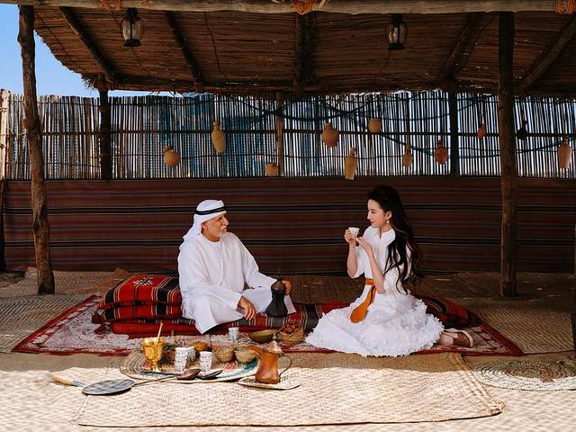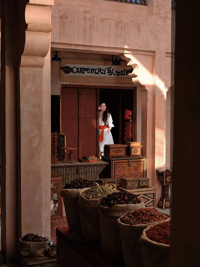 在摩天大楼勾勒的城市天际线之下,民俗村(Heritage Village)为人们打开了一扇窥见阿联酋传统生活的窗口。在这里,你可以观赏工匠现场制作陶器、吹制玻璃、在织布机上穿梭引线,或是学习传统编织工艺、尝一口阿拉伯咖啡,仿佛回到从前的时光,简单又治愈。走之前,别忘了逛逛这里的香料铺子,试试刘亦菲口中“舒服、温暖,带有泥土气息”的乌木香,这是属于阿布扎比的独特韵味。
