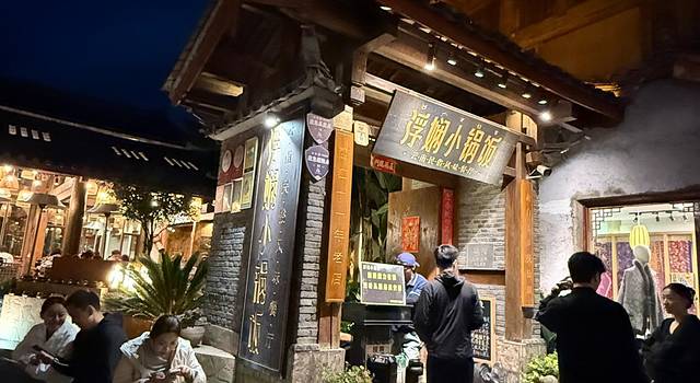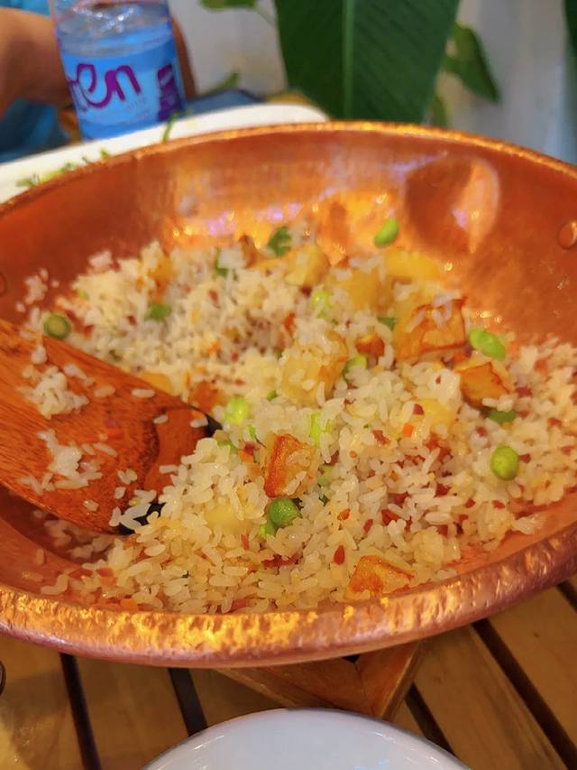 这家店在束河古镇里面,人还挺多的,菜品味道还可以,服务员态度也很好,环境很漂亮,青梅排骨还可以的,很软烂,牛干巴炸的很干,干香干香的,小锅焖饭两个人吃绰绰有余,很香,但是闷久一点会更香,里面的酸角汁和奶酒味道也很好。