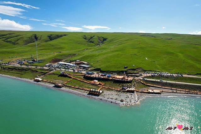 驶过日出小镇——黑马河,沿环湖西路继续前行17公里,便可抵达东格儿观景台,它几乎是环湖路上离水最近的驻足点。