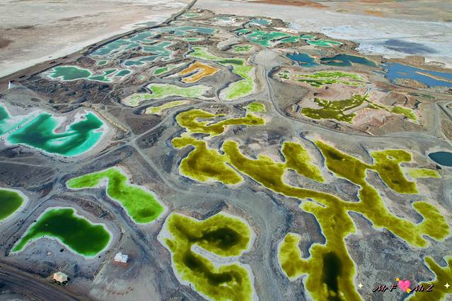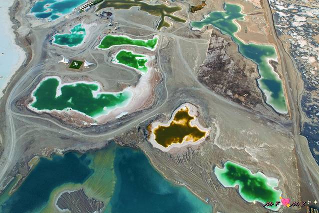 湖水因富含锂、钾、镁等多种矿物质,在不同光线、角度与浓度下,呈现出蒂芙尼蓝、翠绿、奶黄甚至墨玉般的色泽。