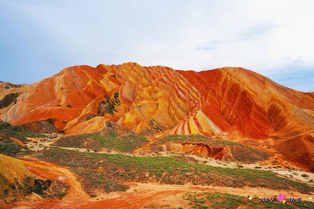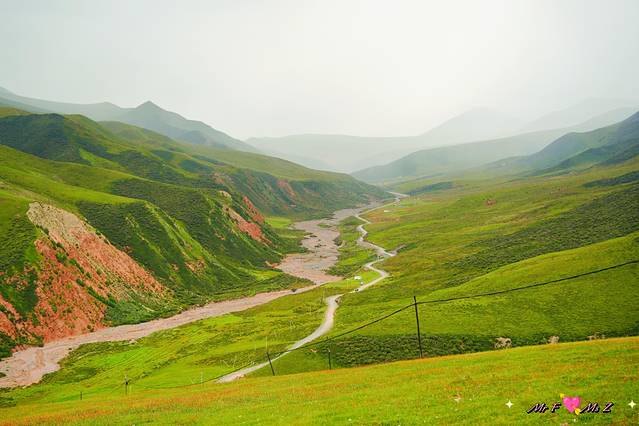 作为祁连山支脉的卓尔山丹霞本就卓尔不群,尤其在雨雾中更显娇艳,山体露出的赤红色砂岩与碧绿的草原形成奇妙的碰撞,宛如皇后华服上的褶皱。