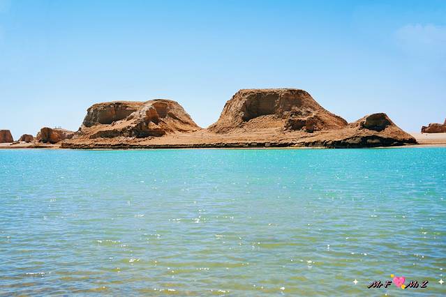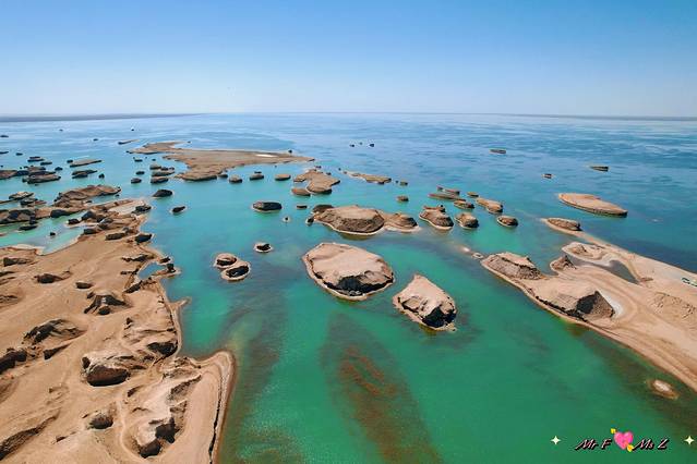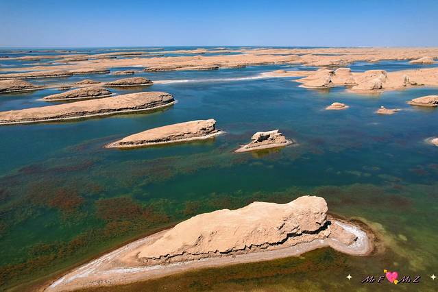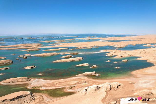 初见乌素特水上雅丹,恍若踏进了一场幻梦。这里是南八仙雅丹群的一部分,土丘林立,高者可达五十米,如巨人般沉默地矗立在湛蓝的水域中。