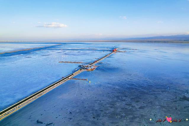 盐湖双子——茶卡盐湖的镜面倒映流云,恍若行走的天空;察尔汗盐湖的盐桥劈开碧浪,仿佛通往异世界的通道。