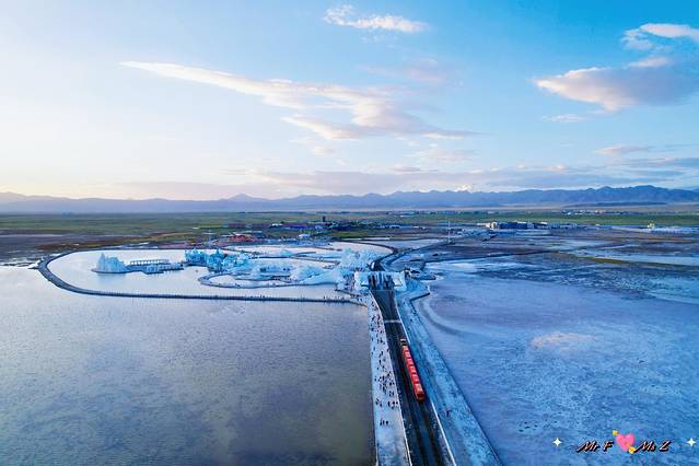 盐湖中,一条轨距仅60厘米的铁轨向深处延伸,它是目前世界上少有的仍在使用的“寸轨”。铁轨始建于上世纪50年代,曾是运盐火车的生命线,2008年随着船采船运技术的投入使用,它才逐渐远离了盐业生产。如今,作为湖上一道靓丽的风景线,被保留下来的铁轨和仍在运行的观光小火车,成为摄影与艺术创作的独特背景,而乘坐小火车穿梭于水天之间,也被很多游客列为茶卡盐湖不可错过的体验之一。