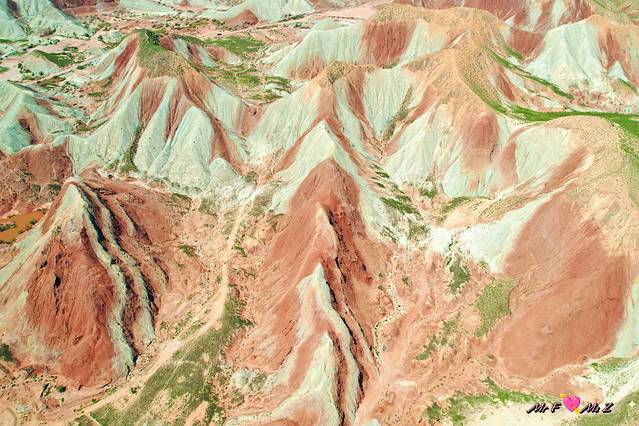 伴随着无人机升空,一亿五千万年的地质变迁以最自然的姿态在镜头前舒展。白垩纪至第三纪的红色岩系,在喜马拉雅造山运动中抬升显露,又经亿万年风雨精雕细琢,最终形成这般层理交错、色彩斑斓的景象。