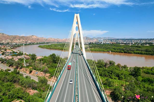 航拍视角下,56对斜拉索如巨琴琴弦,指向201米高的主塔和苍穹。桥上车流如梭,桥下黄河汤汤,钢铁的坚定与流水的柔韧在此刻达成了奇妙的和谐。