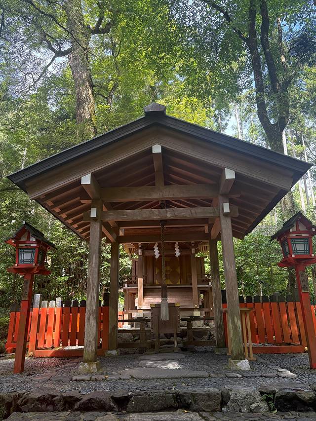 贵船神社我们选择去吃流水素面,只有一家导航就行,因为在最里面所以要从巴士下车后走10-15分钟,会路过贵船的大门。我们10点40多去排队号55号,11点开始接待,前台说需要等待40多分钟,实际是40多分钟(11点20分左右可以进里面排队了,但是当时吃饭是30号,下去在川床上坐着看流水等半小时,就当休息了),贵船有好几家川床料理,这个到底选谁家自己定。因为等待我们在面店对面的小神社(贵船中宫)打卡,据说是姻缘的,如果想祈福需要自助投入200日元,没人管全凭自觉,所以吃流水素面可以先打卡中部,人不多拍拍照就差不多可以到下面等着了。流水素面国人体验不多,我们周围都是日本年轻人,特别是女孩们吃饭一样打卡,素面下来的速度很快,量足够女生吃饱,味道嘛一般重在体验。在川床上等候也不错,有种原理城市喧嚣的惬意感,山里十分凉快,当天下了毛毛雨,还是需要穿厚一些,JPY2000/人。