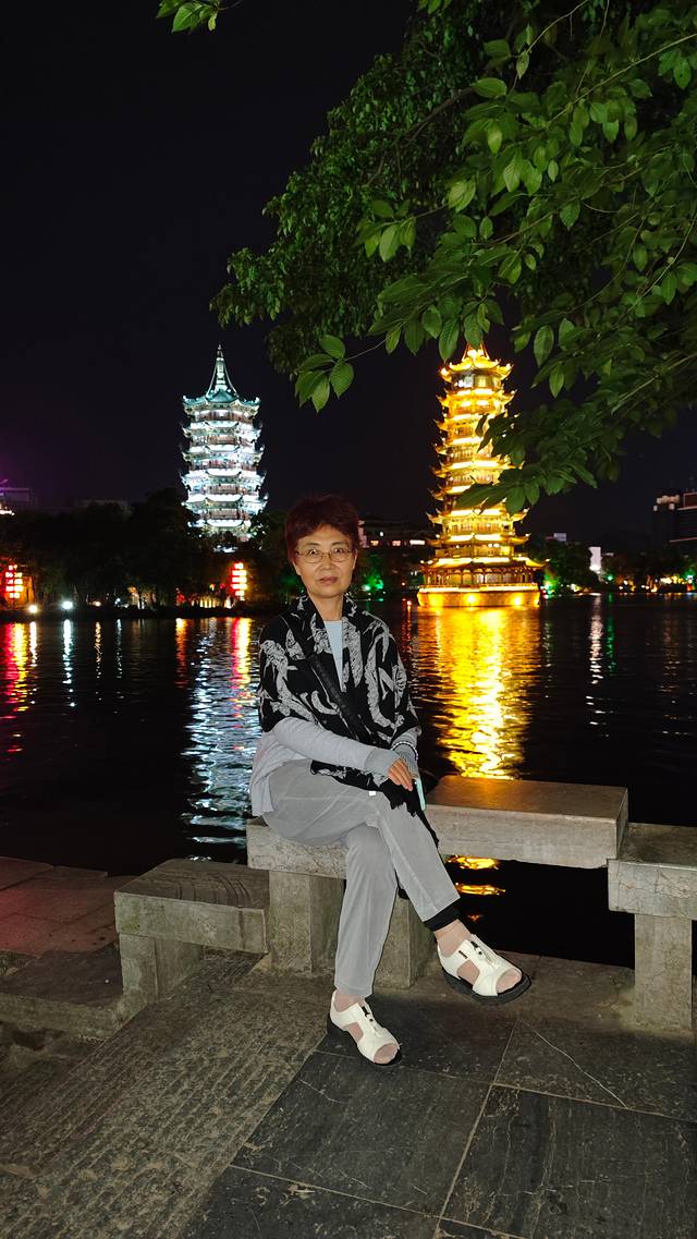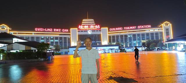 5月10日广西火车沿线大雨泥石流导致我们所乘火车晚点近两个小时,原计划头一天日游象鼻山的计划取消,改为夜游日月双塔、正阳步行街等等。
