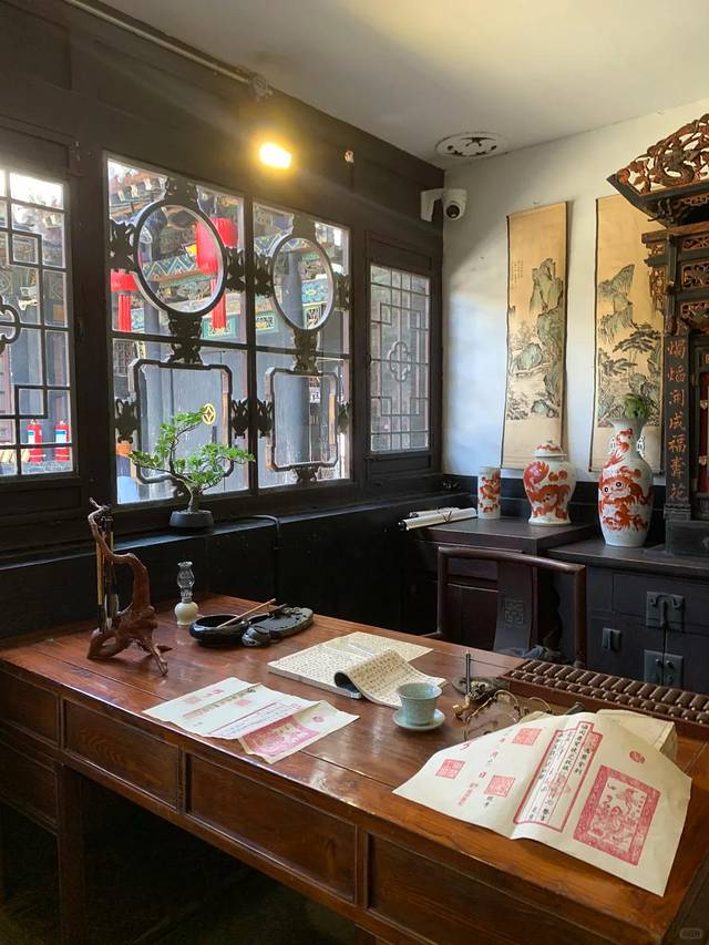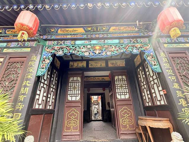 (1)三进院落的精巧设计:院落坐南朝北,与常见民居相反,体现了“南朝北市”的商业布局。前院营业、中院办公、后院生活的格局,功能分明