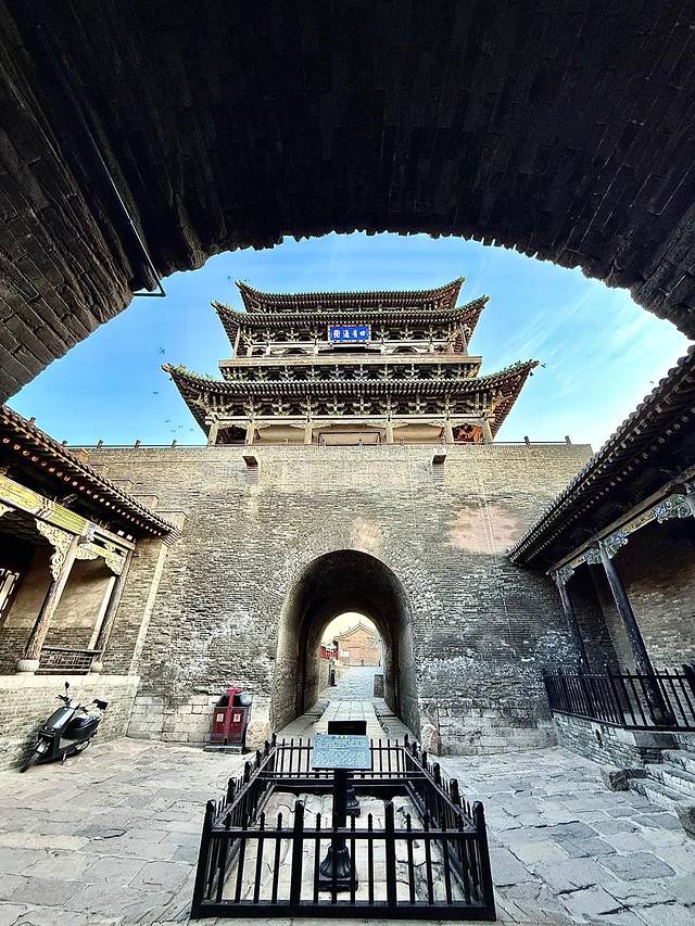 “龟城”格局:鸟瞰 平遥 古城,其形似一只俯卧的灵龟,因此有“龟城”之称。六座城门象征龟的首尾和四足,南大街为龟脊,南北大街与东西大街交错构成“土”字形骨架。这种布局体现了古人祈求城市如灵龟般吉祥 长寿 、固若金汤的美好愿望。
