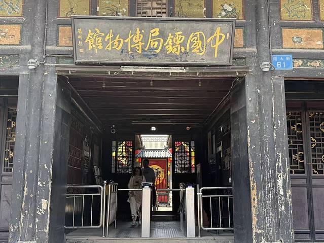 馆内还陈列着当年的镖车、镖箱、镖旗以及各种兵器模型。这些实物能让你直观感受走镖的场景。留意院子上方架设的铁丝网与铜铃,这是当时先进的防盗设施。