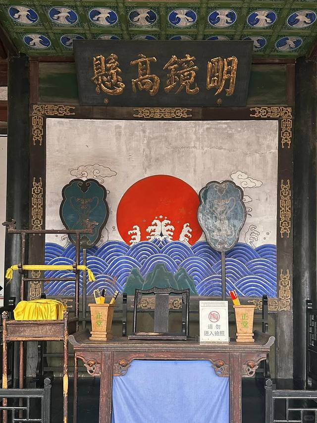 (1)功能各异的建筑群:从威严的大堂(亲民堂)到日常办公的二堂,再到知县居住的内宅,完整展现了古代知县从审案到生活的全方位场景。特别留意二堂门匾上“天理、国法、人情”的警示,它体现了古代官员的断案准则。