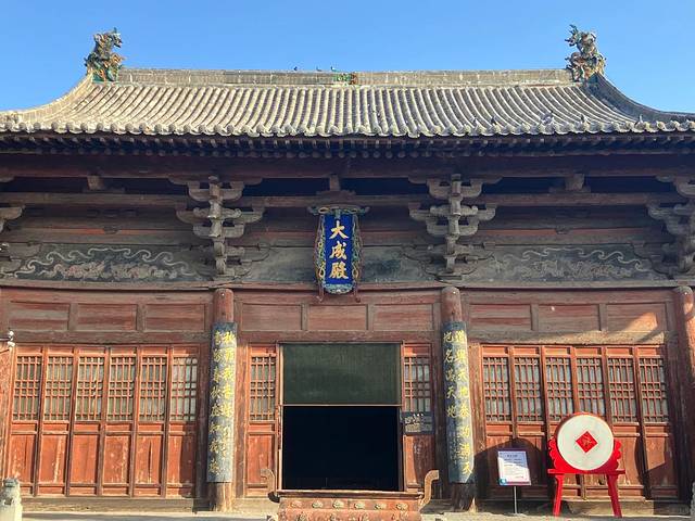 平遥 文庙是我国现存历史最悠久的文庙之一,始建于唐贞观初年,其核心建筑大成殿重建于金大定三年(1163年),是我国现存文庙中历史最久的殿宇,也是全国文庙中仅存的金代建筑,堪称国宝级文物。