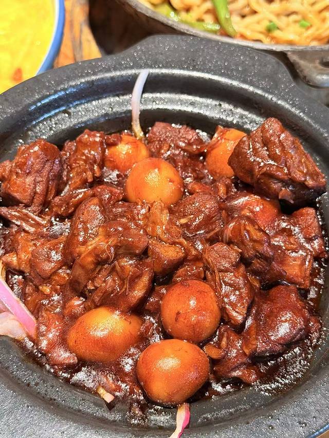 老陈醋焖牛肉是山西醋文化的代表作,牛肉软烂,醋香浓郁却不呛口,汤汁拌饭是一绝~