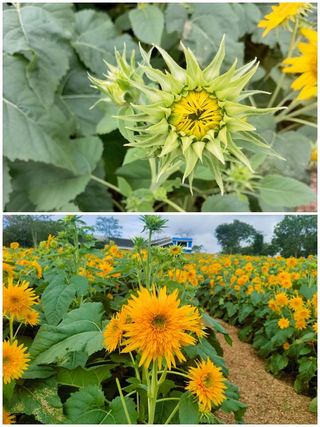 接着前往向日葵园。在家乡很少见到成片种植的向日葵,虽还未到盛放期,但金黄的花盘迎着阳光微微摇曳,自带一种明媚而向上的生命力。站在花田边,心情也不自觉明亮起来。