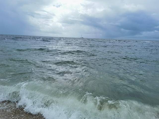 果然,一到白浪滩,天空已放晴,阳光炽烈得有些刺眼。海滩上游客不少,我们简单逛了逛,没久留。