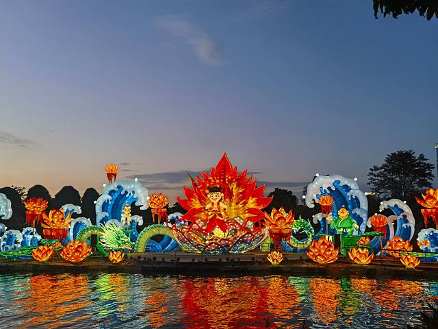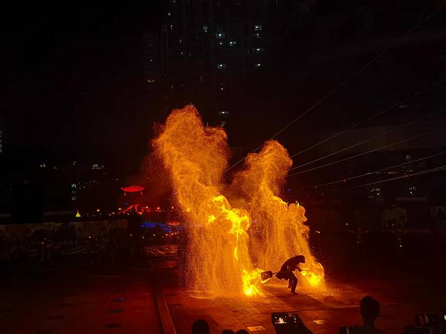 “三街两巷”位于南宁市兴宁区,由兴宁路、民生路、解放路三条步行街,以及金狮巷、银狮巷两条古巷组成。国庆假期人潮汹涌,连骑个小电驴穿行都举步维艰,光是一家冷饮店排队取号就要等上半个多小时。我们随意逛了逛邓颖超纪念馆,随后便前往民生码头,准备观看当晚的火把节与打铁花表演。门票是提前网购的,本以为能安心落座,结果进场才发现根本没有固定座位。无奈之下,只能在观众席的台阶上席地而坐,苦等近一个小时。好在表演开始后,场面确实震撼:火把舞动、铁花飞溅,视觉效果相当不错。只是长时间蜷坐在硬邦邦的台阶上,表演结束后双腿酸痛不已。