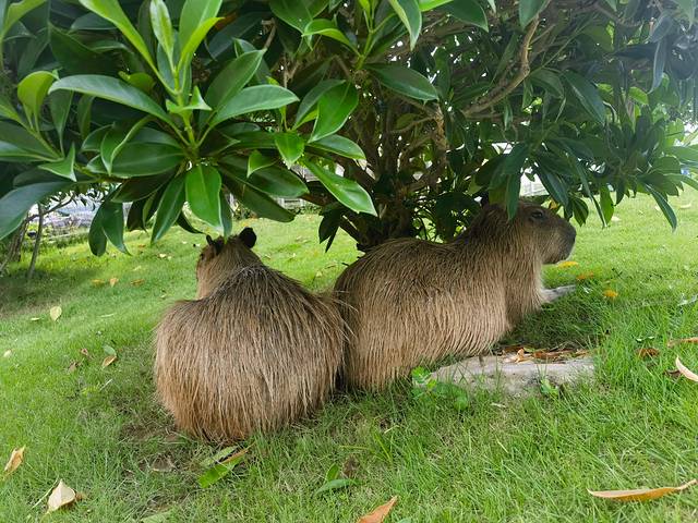 第三站是卡鹿里萌宠乐园(鹿苑)。除了温顺的小鹿和小羊,这里还有“明星动物”卡皮巴拉。门口10元一袋的胡萝卜刚掏出来,几只小鹿就围拢过来,可爱极了。卡皮巴拉,学名水豚,原产于南美洲,是一种以草和水生植物为食的大型啮齿动物。它四肢短短、身材圆滚,表情呆萌,动作慢吞吞,性格却出奇温顺。我们不仅能近距离观察,还能轻轻摸一摸,那份憨态可掬让人忍不住想多观察一会儿。