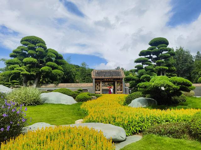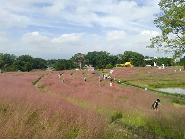 首先去了园博园。园内的粉黛花海和向日葵都已开放,吸引了不少游客前来打卡。早上9点刚开园,我们就抵达了,门票40元。不过一开始有点小插曲:打车时没仔细看入口信息,误打到了北门,结果北门并不开放。正准备再叫车去东门,却因路程太短一直没人接单。眼看要步行一公里,刚走出几步,车竟又神奇地来了,省下了一段暴晒的路,也算运气不错。入园后,我们果断租了一辆电动代步车。虽然速度慢悠悠的,但胜在少走路,尤其在这么热的天气里。