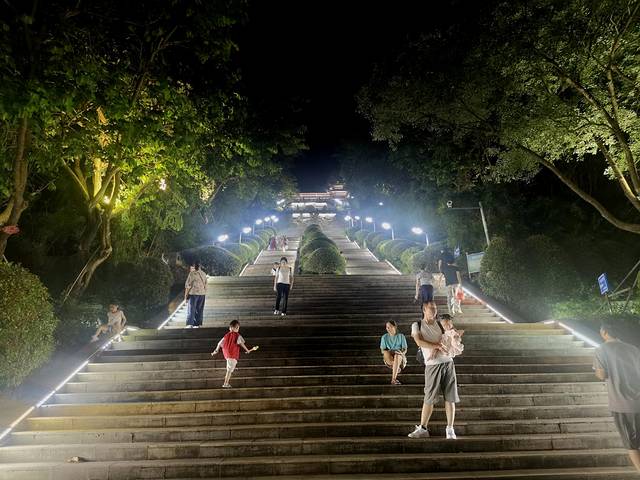 从东兴乘车过来时,我们就留意到了仙人山公园。它位于防城港港口区,离西湾城市沙滩不远。公园主峰海拔196米,山顶的仙人阁是观景绝佳点,可俯瞰港口全景,包括北部湾海景、防城港码头及西湾跨海大桥等。不过登顶并不轻松,网上说共有612级台阶,且坡度较陡,一路爬上来确实气喘吁吁。但到了山顶,视野豁然开朗:夜幕下的城市灯火与海面波光交相辉映,蛮好看的。