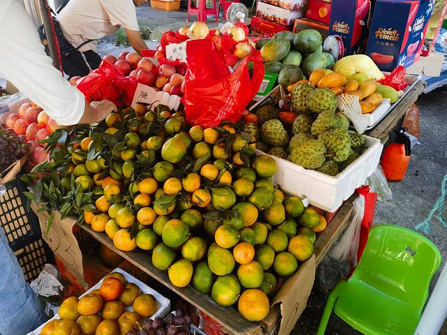 吃饱喝足后,顺路买了些第二天要用的食物,就准备回酒店。打车前路边一个卖木瓜的摊位吸引了我们:木瓜10元一大袋!摊主说是从周边农户收来的,新鲜又便宜。嫂子忍不住买了一袋,我们也觉得“不买白不买”,干脆一起人肉背回尝鲜了。没想到回家放了几天后,木瓜自然熟透,清甜多汁,味道出奇地好。