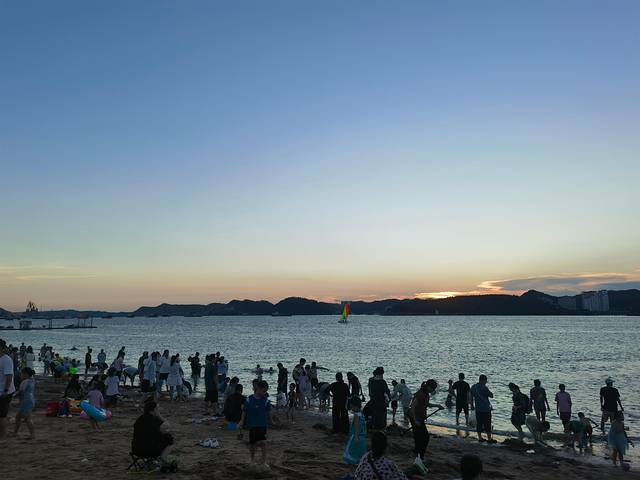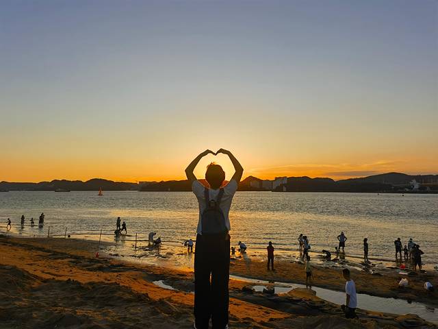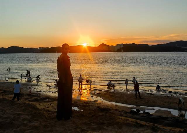 饭后,我们骑上小电驴直奔西湾城市沙滩看日落。夕阳缓缓落入海平线,余晖染红天际,美得让人驻足良久。