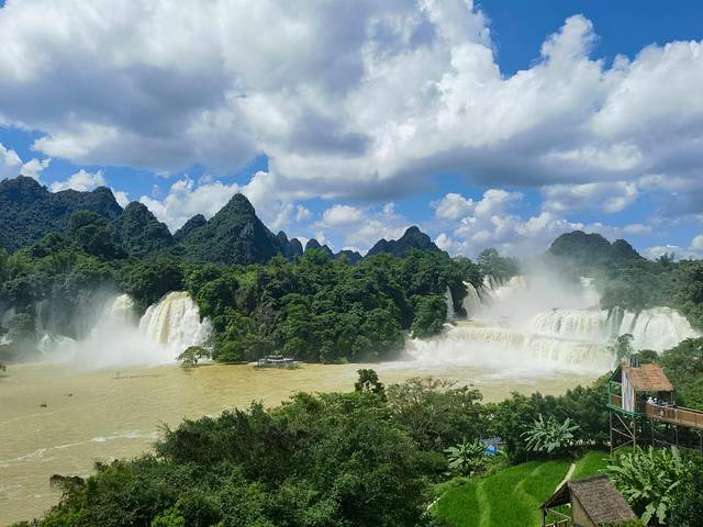 第一天坐高铁从长沙往南宁,住在南宁东站附近的地铁口,原本第二天预定的去德天瀑布的定制团,包车去德天跨国瀑布和洞那屿湾,从南宁出发当日回南宁,不过因为博罗依台风和强降雨影响,9月30日,因河水位过高,德天瀑布景区采取闭园措施,这也是该景区位数不多的闭园情形。所以出行当天非常焦虑,拨打景区电话咨询第二天能不能正常开园,景区也没法给出具体答复,纠结思考再三,还是联系客服取消了第二天的行程。第二天查询到德天跨国瀑布景区10月1日实行“限量、预约、错峰”实名制购票入园措施,不过从游客反馈的图来看,水量有点过大,是所谓的“黄金瀑布”。
