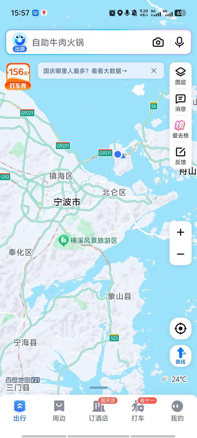 跨海离沪基本不堵,宁波到舟山的唯一大桥全程挪着走。