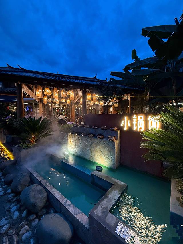 开在束河古镇里的餐馆,国庆节排队人多,人气很高!