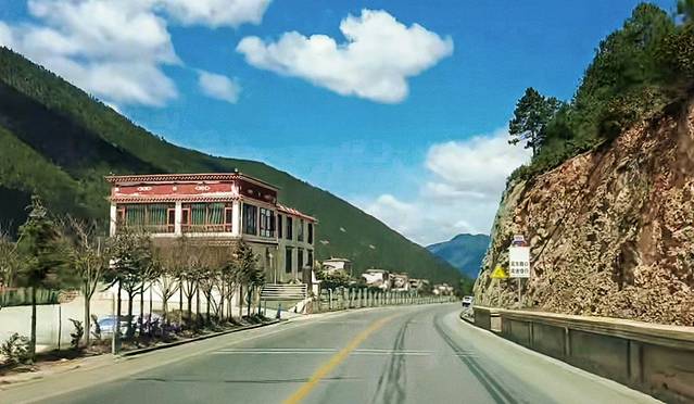 从拉乌山下来,就是35公里的大小坡,路上有不少的炮弹坑,一个个藏族村落一一呈现。